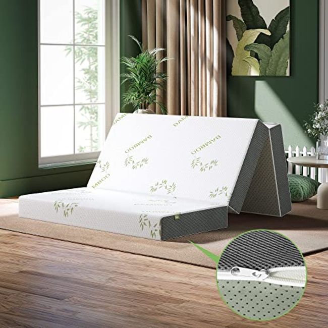 TeQsli Folding Mattress Double, 10cm Gel Memory Foam Tri Fold Mattress 4FT6 with Ultra Soft Washable Cover, Pressure Relief & Supportive, Space-Saving, 100-Night Free Trial (135x190x10cm) Total RRP £189.72